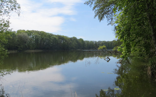 Nur wenige hundert Meter entfernt erreicht man einen kleinen, durch eine künstliche Landbrücke abgetrennten Teil des Sees. Die im Volksmund „Schlossteich“ genannte Bucht hat eine sumpfige Uferzone. Hier kommen die geschützte Sumpfdotterblume, Froschbiss, Gold-Hahnenfuß und Krebsschere vor.