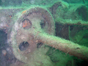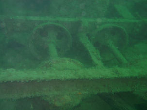 Nachdem wir in den ersten Steinbruchkessel den Stören, Karpfen und Quallen einen Besuch abgestattet hatten, unternahmen wir einen Tauchgang im dritten Taucherkessel. Dieser Steinbruch wurde bereits 1948 geschlossen und ist dann vollgelaufen. Den Einstieg erreichten wir über einen steilen, schmalen Pfad. Die maximale Tiefe beträgt 12 m und die Sicht ist meist etwas schlechter als im ersten Felsenkessel. Highlights sind hier das Pumpenhaus gleich links neben dem Einstieg sowie Rohrleitungen und noch vorhandene Gleisanlagen mit Kipploren aus der Zeit des Porphyr-Abbaus.