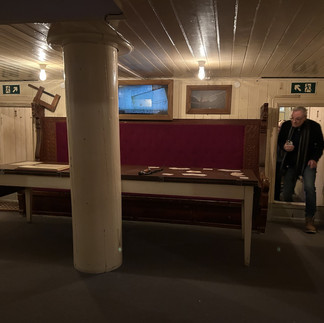 Der Höhepunkt ist der Blick in das Schiff selbst. Über schmale Stege gelangt man an Bord der Fram und kann Kajüten, Maschinenraum und Arbeitsbereiche aus nächster Nähe betrachten. Die Enge der Räume macht sofort deutlich, wie hart und entbehrungsreich das Leben auf See und im Eis gewesen sein muss. Gleichzeitig zeugt die robuste Bauweise von der außergewöhnlichen Ingenieursleistung, mit der das Schiff dem Druck des Packeises standhalten konnte.