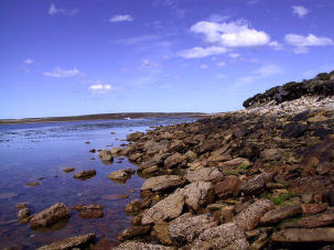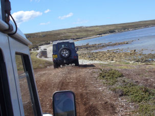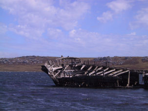 In westlicher Richtung im Hafen von Stanley liegt das Wrack der „Jhelum“. Sie wurde 1840 in Liverpool in England vom Stapel gelassen. Als sie 1870 versuchte Kap Hoorn zu umrunden, erlitt sie schweren Schaden und schaffte es gerade noch nach Stanley, wo das Schiff von seiner Mannschaft verlassen wurde. Geladen hatte die „Jhelum“ Guano, der als Düngemittel verwendet werden sollte
