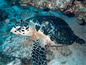 Wir tauchten an den berühmten Turneffe-Islands. Sie bilden sozusagen die Oberfläche des Turneffe-Atolls. Dieses Atoll ist etwa 48 Kilometer lang und 16 Kilometer breit und liegt ungefähr 30 Kilometer von der Küste entfernt. Ein großer Teil des Atolls besteht aus Mangroven und ist nicht zugänglich. Unter Wasser herrschte eine starke Strömung, die uns in beträchtlichem Tempo an der wunderschön bewachsenen Rifflandschaft vorbeitrug. Den Korallen tut diese Strömung sichtbar gut. Schwärme buntschillernder Fische ziehen von Gorgonienfächer zu Gorgonienfächer. Oft trennte sich mein Blick vom Riff und wanderte hinaus in das tiefe Blau des offenen Wassers. Die Hoffnung, einen großen Hai zu erspähen, wurde aber leider nicht erfüllt. Dafür schwebten an einem schräg abfallenden Riffabhang zwei große Adlerrochen aus der Tiefe empor, beäugten mich kurz und drehten dann mit eleganten Flügelschlag ab. Zum Abschluss paddelte noch eine Schildkröte vorbei.