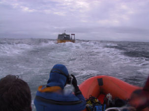 Mein erster Tauchgang führte uns bei rauer See zum Wrack der „Kowloon Bridge“. Es handelt sich um das zweitgrößte Wrack in europäischen Gewässern überhaupt. Das über 280 m lange und 45 m breite Schiff ist am 22. November 1986 mit 160.000 t Eisenerz südöstlich von Tragumna gesunken.